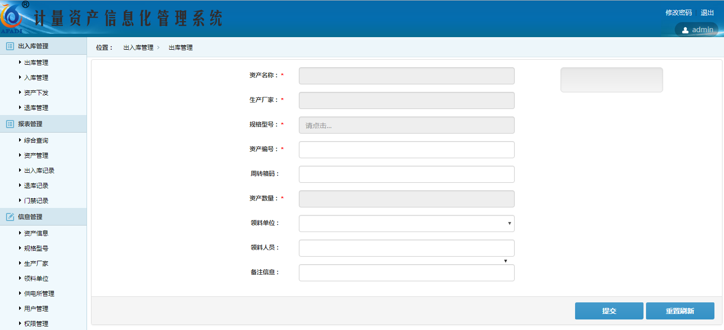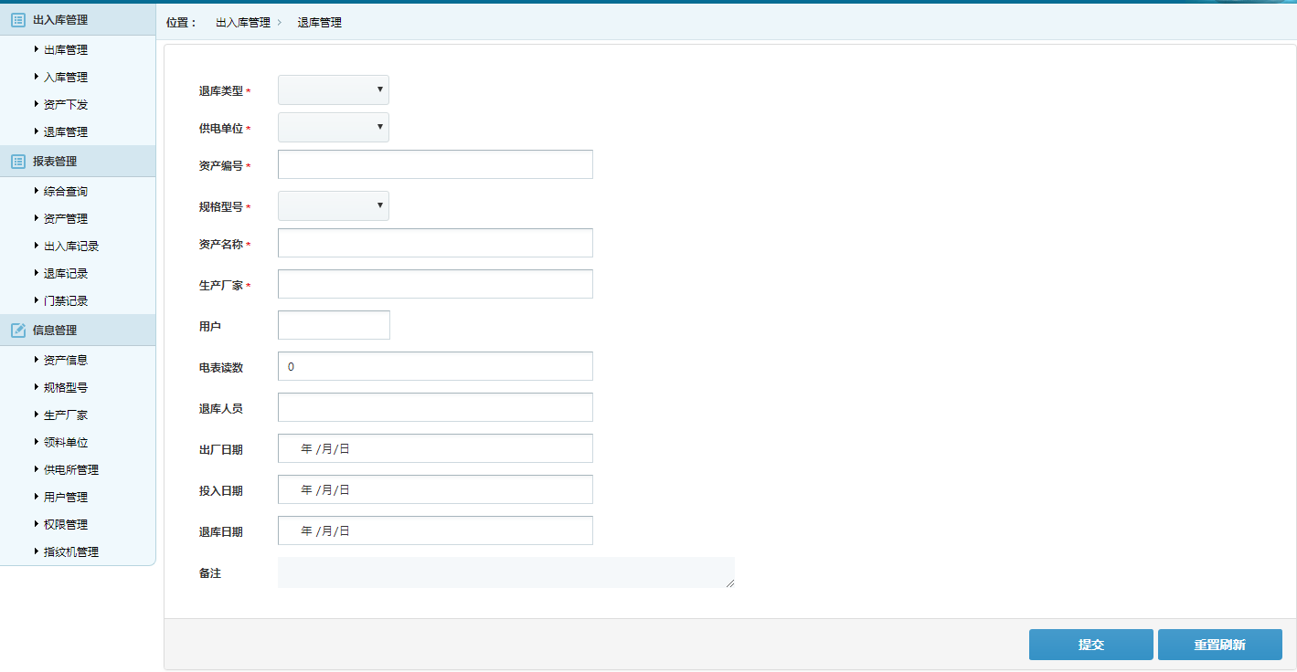 模塊功能:對需要管理的庫房資產進行出庫或入庫的操作?;蛘咧苯佑晒╇娋窒掳l到下屬供電所。