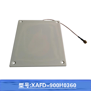 XAFD-900H0360天線,H代表垂直極化,符合RoHS標準,IP66防水等級,90度的水平角度覆蓋,針對近距離的應用場景設計,范圍在30厘米以內,距離和標簽及讀寫器功率都有關系。薄款,小巧,安裝方便,引線從背面引出。